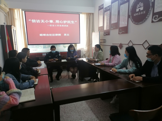 昭明台社区组织邀请社区律师向居民们细致入微地讲解《信访工作条例》,针对居民提出的疑问认真答疑解惑。古城派出所民警要求社区工作者要积极向居民宣传《信访工作条例》,正确引导广大居民正确通过信访渠道表达合理诉求,有效化解居民矛盾。