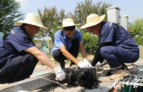 这幅高温炙烤下的检修场景,仅仅是乡镇污水项目运维保障的一个缩影。连日来,襄阳国投益清环保运维人员不惧高温,对厂站设备、管网等进行了全面的安全排查,及时消除各项安全隐患。今年以来,益清环保还强力推进乡镇污水项目提质增效,完成了多项技改工作,目前正在推进MBR工艺膜组件更换、沉淀池跑泥改造等技改项目。同时,公司科学安排、合理调度高温室外作业时间,严格落实汛期24小时值班制,组织开展“送清凉 送温暖”慰问、防汛减灾应急演练等活动,确保乡镇污水项目平稳度夏。